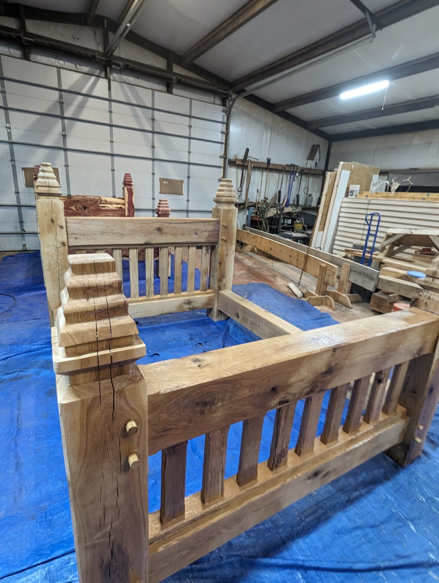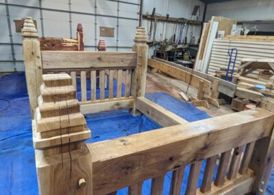Our skilled craftsmen meticulously prepare the timber at our shop, ensuring precision and quality.